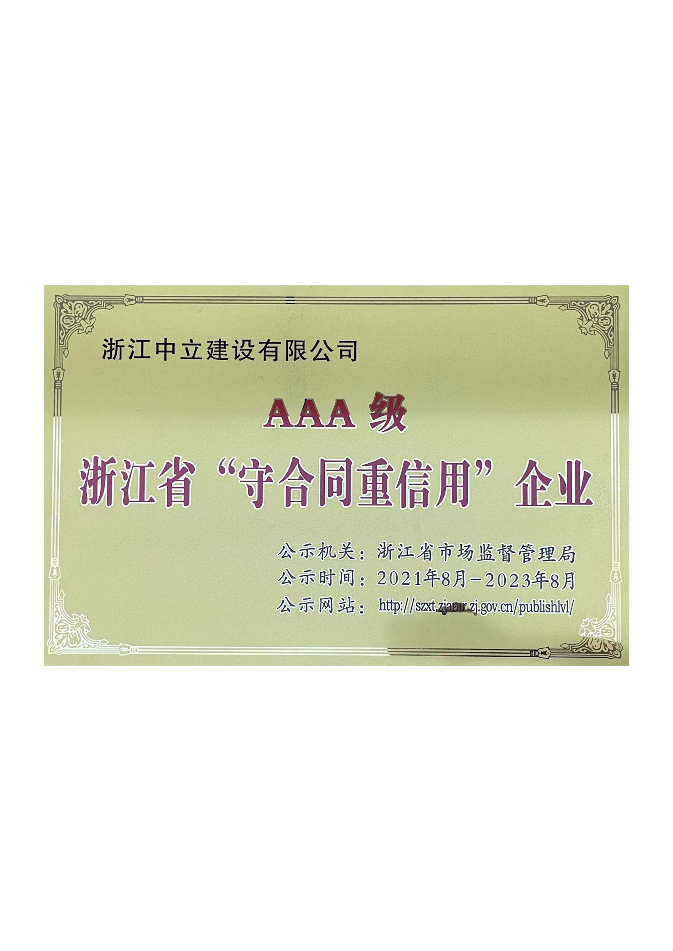 浙江省”守合同重信用“企業