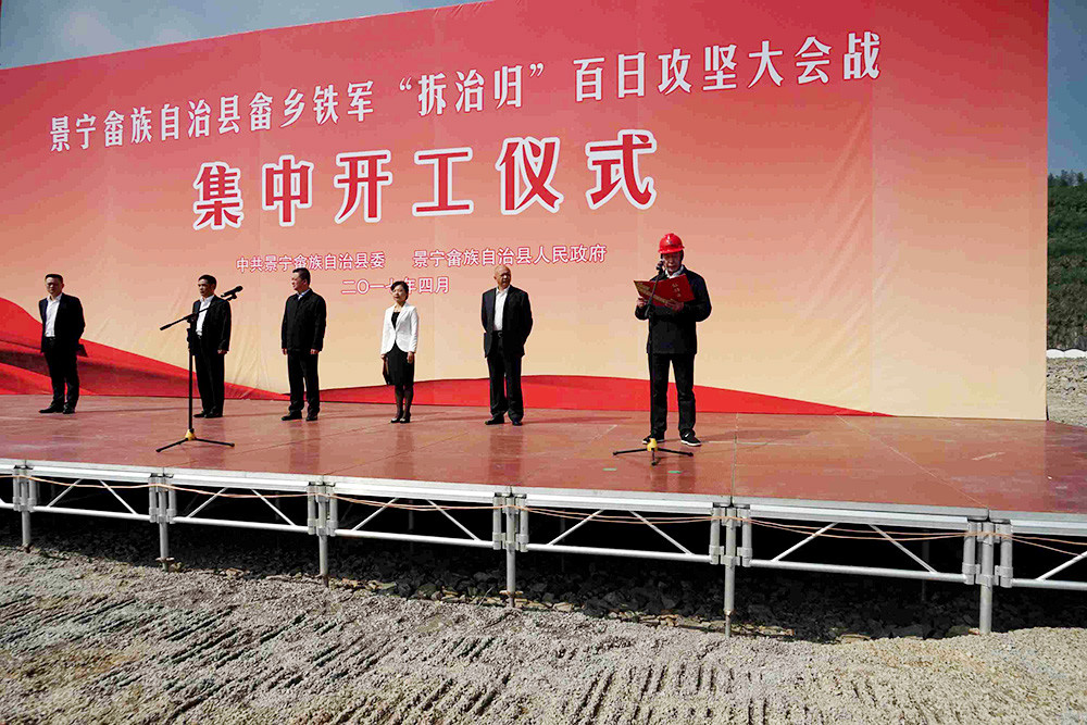 4月24日上午,景寧畬族自治縣畬鄉(xiāng)鐵軍“拆治歸”百日攻堅(jiān)大會(huì)戰(zhàn)集中開工儀式在鳳凰學(xué)校舉行,縣委書記、縣長等領(lǐng)導(dǎo)出席儀式,中立公司代表40多個(gè)施工項(xiàng)目單位作表態(tài)發(fā)言。